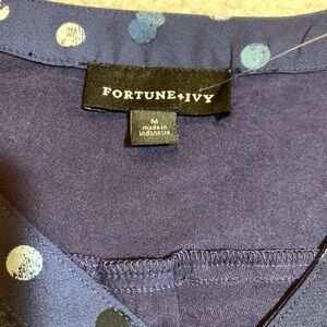 NWOT Fortune & Ivy Polka Dot Boho Blouse Top V-Neck 3/4 Tie Sleeves Women Medium