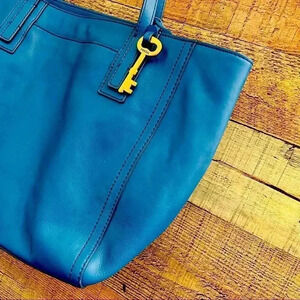 NWOT Fossil Emma Leather Blue Shoulder Tote