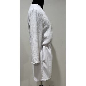 This NWOT Fraiche by J White 3/4 Sleeve Shorts Romper is a stylish and versatile piece for women. Made from a rayon blend crepe fabric, this one-piece features a V-neckline, 3/4 sleeves, and a zipper accent. The romper is perfect for travel, parties, or casual outings, with added features like an elastic waist, pockets, and a 1/4 zip detail. The solid white color and size small make it a great addition to any wardrobe, offering both comfort and style in one chic design.
