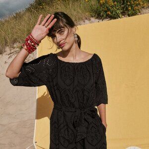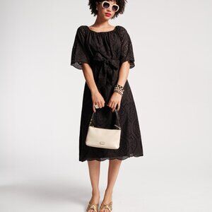 Float through warm days in the effortlessly elegant Coco Eyelet Midi Dress. The delicate eyelet design and flattering midi length make it a must-have for your wardrobe, while the removable belt adds a touch of versatility and shape. With quarter sleeves and a timeless, feminine silhouette, this dress is perfect for everything from a sunny brunch to an afternoon garden party. Pair with strappy sandals and a basket bag for a chic, easy-going look.