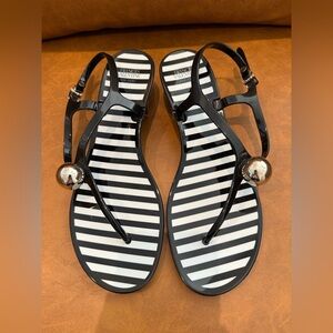 NWOT Frances Valentine Virginia Jelly Thong Sandals Black white Striped 8 / 38