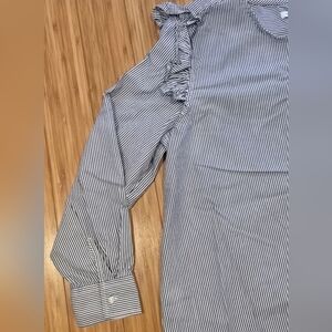 NWOT Free Assembly Striped Blue Ruffle Sleeve Top