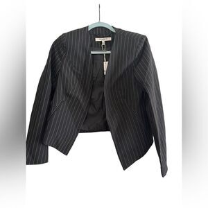 NWOT. Free Generation Pinstripe Blazer. Black with white stripes, shoulder pants, no closure, 2 front faux pockets.