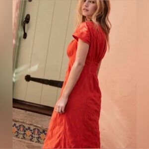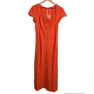 NWOT Free People 100% cotton Natalya Solid Midi Dress. Color is Warm up Red ( more like a red orange) Size Small