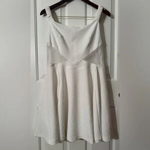 NWOT Free People ALLURING Brooklyn Mini Dress White L Lace Sheer Twirly Pockets