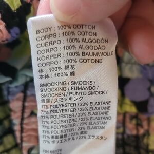 From the website: Forever femme in a bold floral print, this essential top is featured in a square-neck silhouette with smocked bodice and puffed sleeves for added shape.