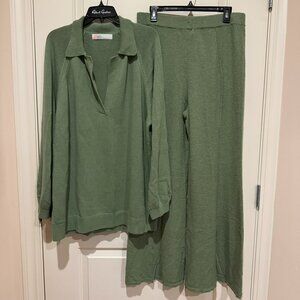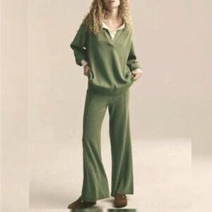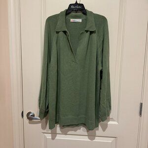 Oversized, relaxed siluette knit top. Collar neckline. Banded sleeves.