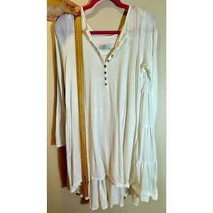 A perfect long sleeve dress from FP Beach Free People billowy and loose white Henley dress features tiering in back.
