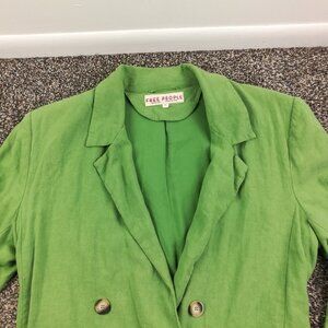 NWOT Free People Blazer Jacket Linen Double Breasted Grassland Green Sz Medium