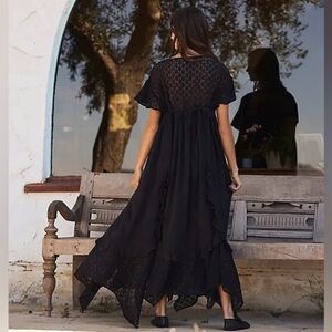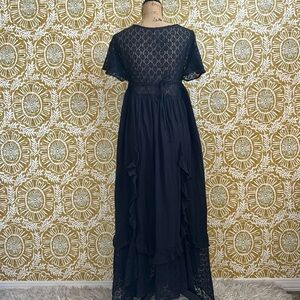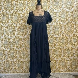 Free People Bring The Romance Black Lace Ruffle Babydoll Midi Dress. Size XS, brand new without tags. Retail $108, sold out online. Please note, it can easily work as maxi dress, depending on the height.