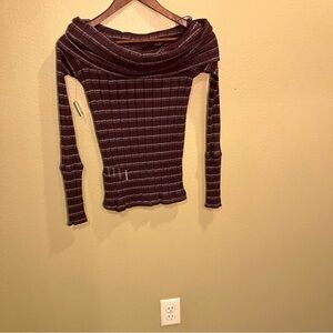 NWOT Free People Brown Stripe Cowl Neck Stretchy Shirt, Size Small