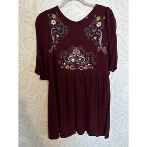NWOT Free People Burgundy Embroidered High Waist Dress M