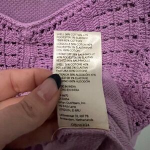 Add a special touch to your tee collection with this forever timeless version featuring crochet detailing at chest and defined shoulder detail for added shape. * Rounded bottom hem* Soft, stretch knit fabrication * Thumbhole detailing