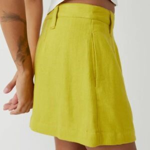 NWOT Free People Can’t Blame Me Mini Skirt Linen Blend 4 Pockets Chic Yellow