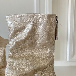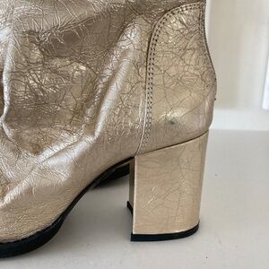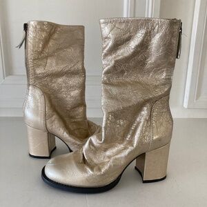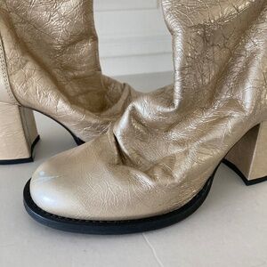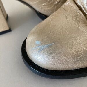 NWOT Free People Date Night Elle Gold Leather Block Heels Sz 37