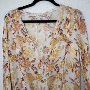 Elegant floral bodysuit top featuring a blend of cream and brown hues. Perfect for adding a touch of sophistication to any outfit.
