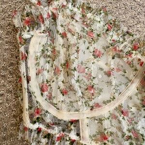 Embrace elegance with this longline floral lace bralette. Featuring a delicate cream base with pink and green floral accents, it's perfect for adding a touch of femininity to your intimates collection. Never worn.