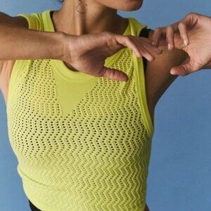 NWOT Free People Movement Free Throw Muscle Top in Highlighter Yellow - Cropped Silhouette, Soft, Textured Fabrication