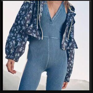 NWOT Free People Happiness Runs Ribbed Henley Onsie in Royal Blue Size M / L