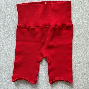 TAGS: FP Free People Movement Happiness Runs High-rise High-Waist Bike Run Hike Shorts Ribbed Athleisure Activewear Gym Cycling Spin Weightlifting HIIT Workout Red