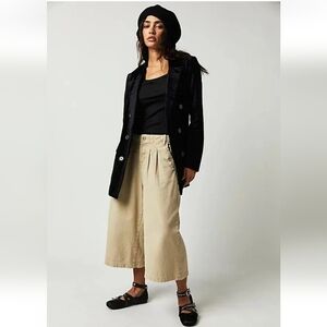 NWOT Free People Hard Rain Gaucho Pants High Waisted Wide-Leg Cotton Size 2