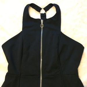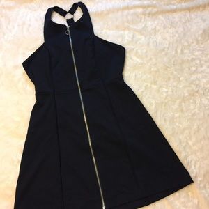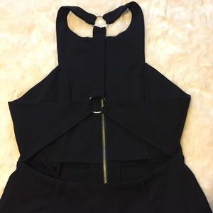 Brand new never worn edgy skater style dress, featuring a modern high neck, full-front zip and cage-like back cutouts secured by silver-tone rings.High round neck, sleeveless, A-line skirt. Exposed full-zip front closure, T-strap back with ring details. Lower-back cutout.