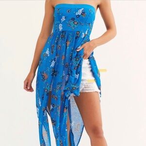 In a lightweight, semi-sheer and crinkly fabric, this printed top is featured in a strapless silhouette with a bustier-inspired bodice.