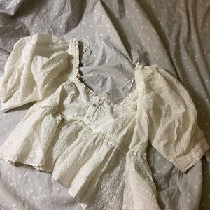 NWOT Free People Leave It To Me Babydoll Crop Puff Sleeves Top Large