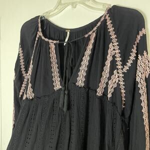 NWOT Free People Lined Wild Horses Mini black embroidered floral boho Dress US S