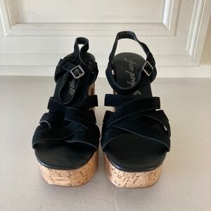 NWOT Free People Lisbon Platform Plain Black Strappy Mules Sz 36.5
