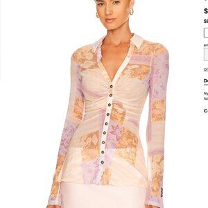 Nylon blend. Imported. Machine wash recommended. Front button closure. Ruched mesh fabric with paisley design. Revolve Style No. FREE-WS3929. Manufacturer Style No. OB1385185.