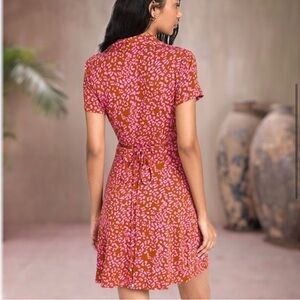 This stylish dress features a vibrant pink and red pattern, perfect for any occasion. The elegant design offers a flattering fit and a chic look.