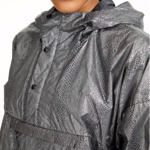 Self: 100% nylon.Lining: 44% polyamide, 38% poly, 18% elastane. Ripstop fabric. Partial front zipper and snap button closure. Front zipper pocket. Elastic cuffs. Side seam slits.