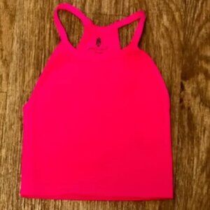 • Other information: Racerback design. Wife beater material. Ribbed. High neckline. Cropped. Stretchy. Small amount of compression. Machine wash cold.