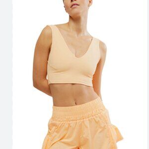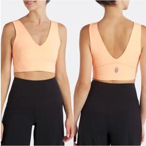 A new addition to our favorite ultra-soft collection, this cool crop is featured in a smooth fabrication and longline silhouette with a plunging neckline and bold V-shaped back detail.