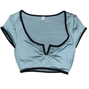 So cool and cropped, this bra is featured in a baby tee inspired silhouette and pull-on style with V-shaped detail at the bust and short-sleeves.