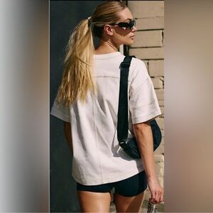 NWOT Free People Movement Post Up High V-Neck Tee Paris Medium cream and Red