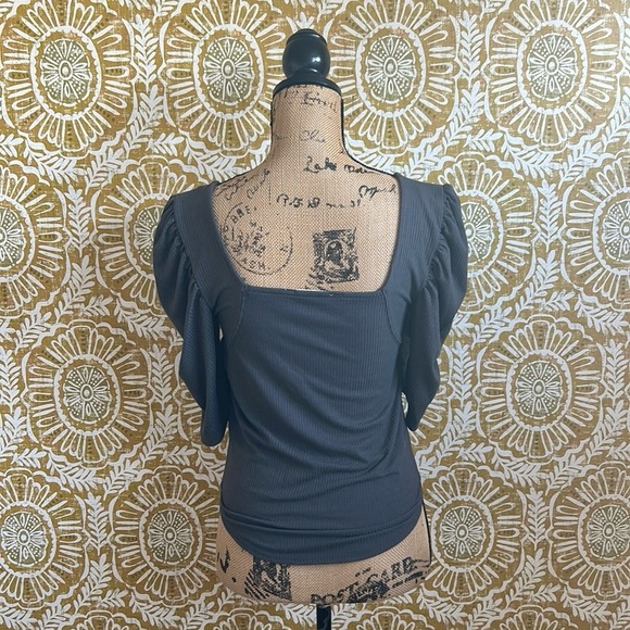 Free People We The Free ribbed puff sleeve top in Charcoal Gray. Size L, new without brand tag, but with Nordstrom tag attached. Retail $78, retired style.