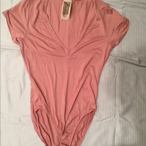 NWOT Free People Oh Me Oh My Bodysuit - Rose. Snaps on the bottom of the body suit - material has a little stretch to it and the color is a millennial pink.