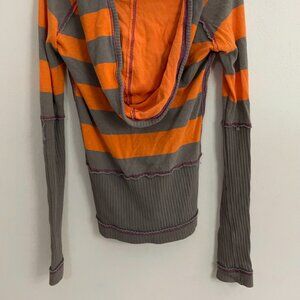 NWOT Free People - Orange and Grey Striped Long Sleeve Hooded Top - Size XS