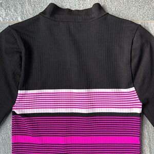 TAGS: Free People FP Intimately Long Sleeve Mock Neck Pullover Athletic Fitted Stretchy Shirt Top Black Hot Pink White Stripes Errands Activewear Walking Hiking Running Athleisure