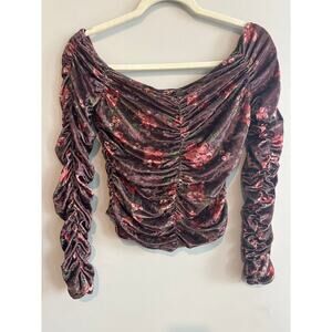 NWOT Free People Reina Floral Off The Shoulder Top In Velvet Brown Size Small