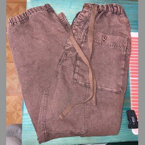Cool in cargo, these easy pants are the perfect trans-seasonal staple. An acid brown wash.