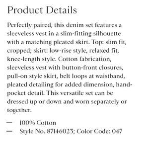 This Free People Scout Denim Vest and Skirt Set in Teal Flower is brand new without tags and in excellent condition! Purchased for myself, but never wore it. Open to reasonable offers through the offer button! The last 8 photos are of the actual set.