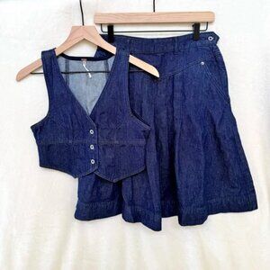 NWOT Free People Scout Denim Vest and Skirt Set in Teal Flower