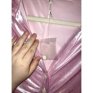 NWOT Free People Shayla Pink Velvet Button Front Long Sleeve Ruched Mini Dress S