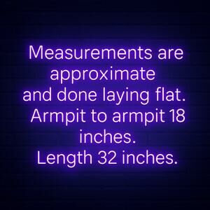 Measurements: Measurements are approximate and done laying flat. Armpit to armpit 18 inches, No stretch. Length 32 inches.