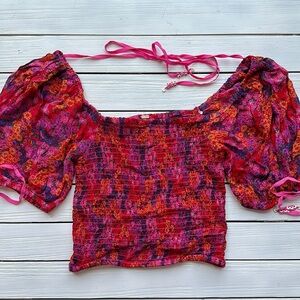 NWOT Free People Smocked Floral Crop Top Hot Pink Multi size XS