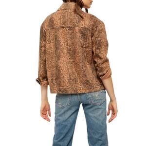 NWOT Free People Snake Trucker Jacket XS Brown Snakeskin Print Denim Cotton