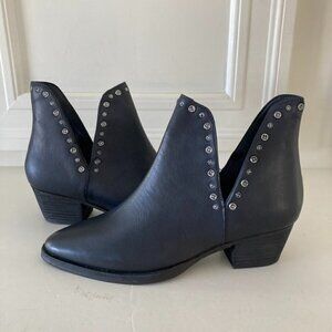 NWOT Free People Studded Charm Double V Black Leather Boots Sz 38.5